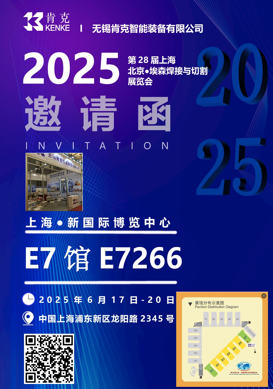 無錫肯克智能裝備將于2025年6月17-20日參加在上海新國際博覽中心舉辦的第28屆北京埃森焊接與切割展覽會,歡迎新老顧客蒞臨我司展位,我司展位位于E7館,展位號E7266。