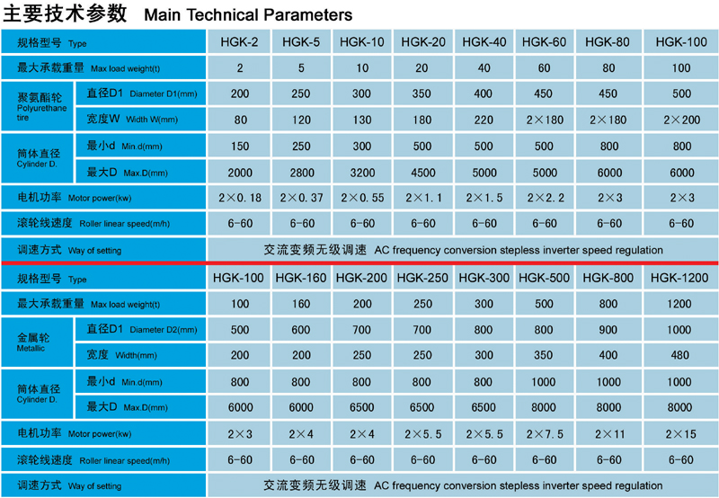 本滾輪架分為可調式和自調式滾輪架,可適用規定范圍內大小不同直徑的產品、并能在規定范圍的焊接參數下,實現無級調速,傳動噪聲低,工作回轉平穩。